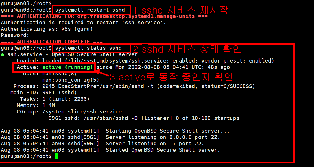 sshd 서비스 재시작 및 상태 확인하기