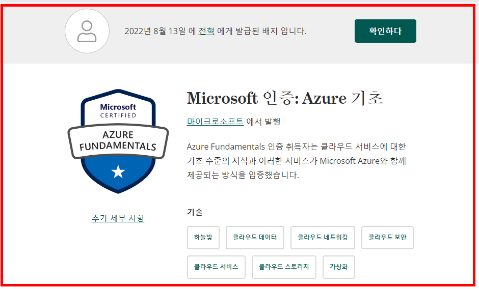 Fundamentals 자격증이라고 해도 우리나라에선 9만원, 해외에선 10만원이 넘는 돈이어서 웨비나를 들으면 무료로 볼 수 있고 클라우드 개념을 정리할 수 있는 좋은 기회이기도 했고 자격증을 취득하면 받는 뱃지가 조금 탐이 났습니다.