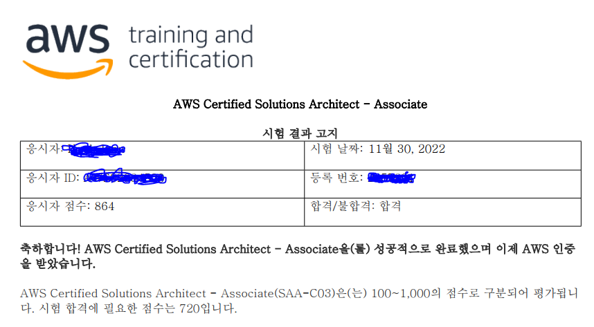 AWS 공인 교육은 교육을 받을 때가 8월이었는데 AWS 서비스와 시스템 운영까지 약 2주 동안 이론 공부를 했고 교육 센터에서 시험을 볼 수 있는 바우처 쿠폰을 받았었는데 기간이 11월 28일까지인 쿠폰을 받아버려서 시험을 볼 수밖에 없었습니다. AWS 시험이 C02에서 C03로 바뀐 지 얼마 되지 않은 시점이었기 때문에 다른 분들의 취득 후기를 보고 시험을 보고 싶었습니다. 그래서 기다리는데 후기가 거의 없어서 떨어지더라도 내가 시험 후기를 남겨야겠다는 생각으로 시험을 보게 됐습니다. 그리고 클라우드 그중에서도 AWS를 다룬다면 SAA 자격증을 다들 취득하는 분위기이기 때문에 저 역시 취득하고 싶었습니다.