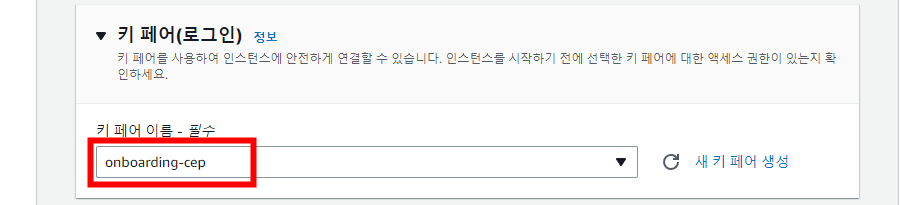 EC2 인스턴스에 SSH로 접속하기 위해 조금 전 생성했던 키 페어를 등록합니다.