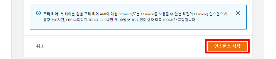 여기까지 설정을 마쳤다면 [인스턴스 시작]을 눌러 인스턴스를 시작합니다.