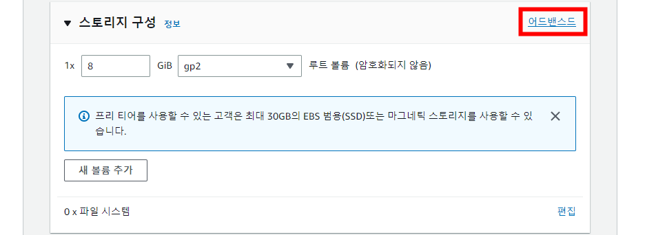 스토리지 구성에서 [어드밴스드]를 선택합니다.