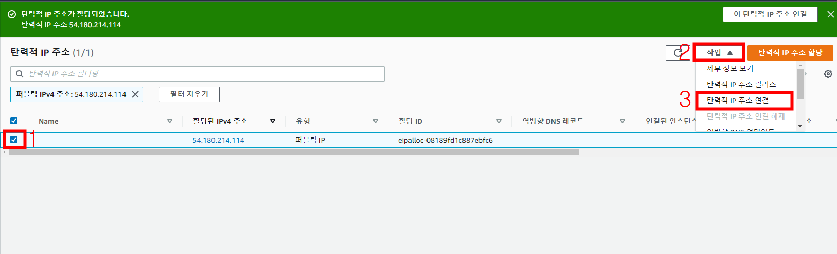 3. EIP 생성 및 연결하기