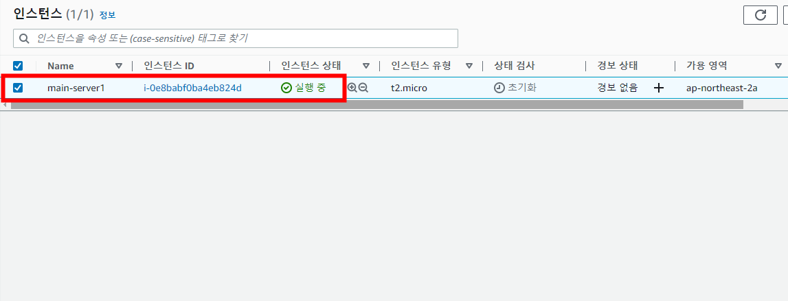 방금 생성한 인스턴스가 실행 중인지 확인합니다. 인스턴스가 정상적으로 생성이 되었습니다.