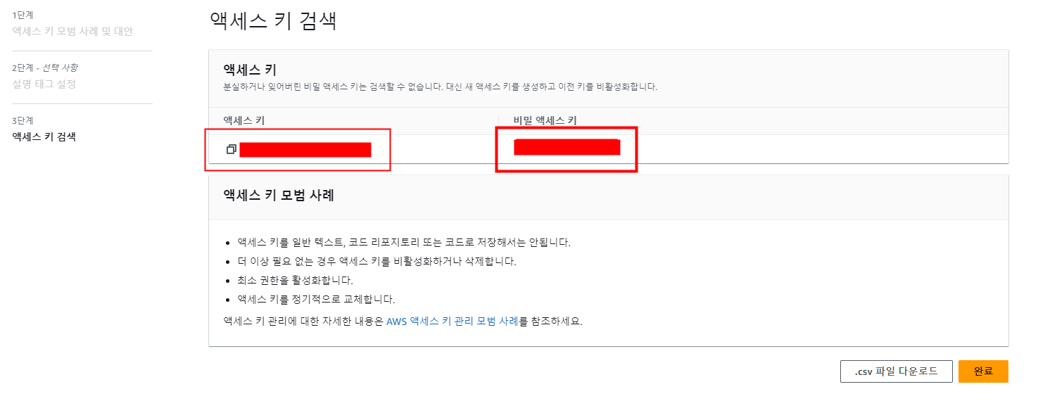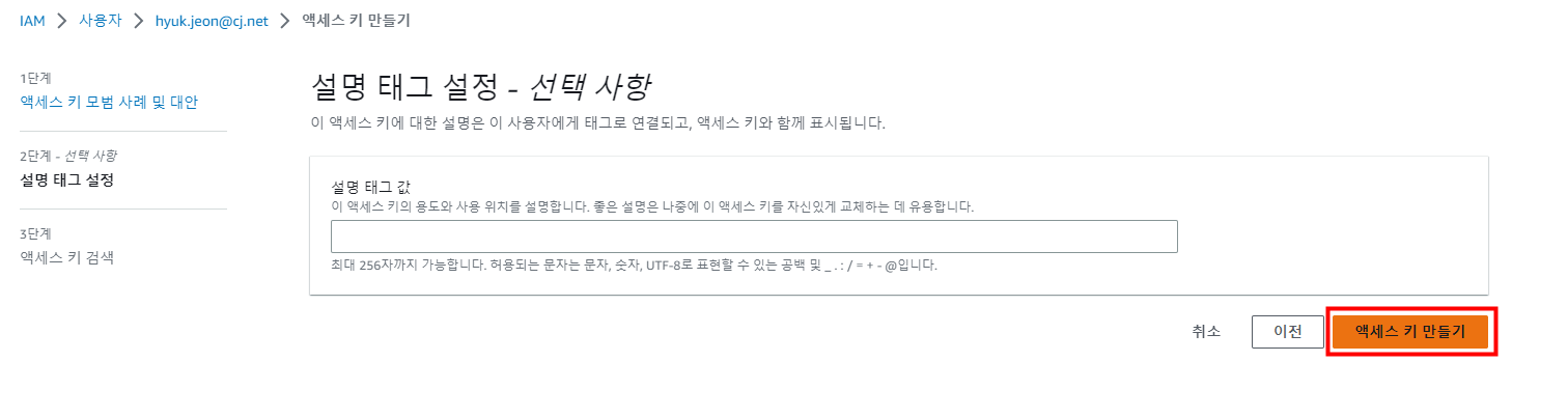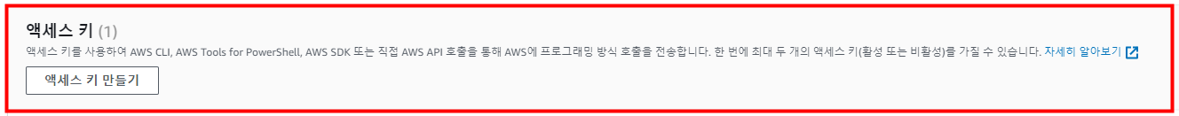 [액세스 키 만들기]를 눌러 줍니다.