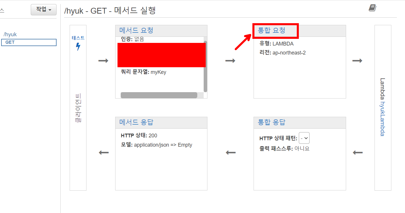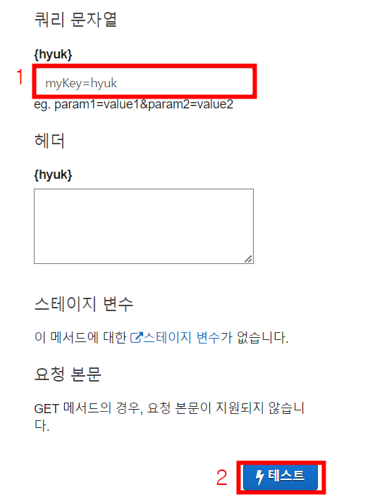 다음과 같이 [테스트]를 눌러 GET으로 동작하는지 테스트해줍니다.