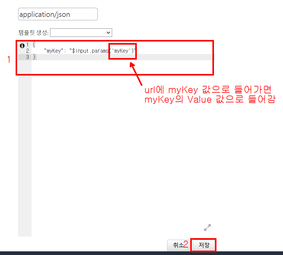 URL에 myKey 값을 지정하면 `$input.params`로 인해 "myKey" 값의 Value 값으로 들어가게 된다.