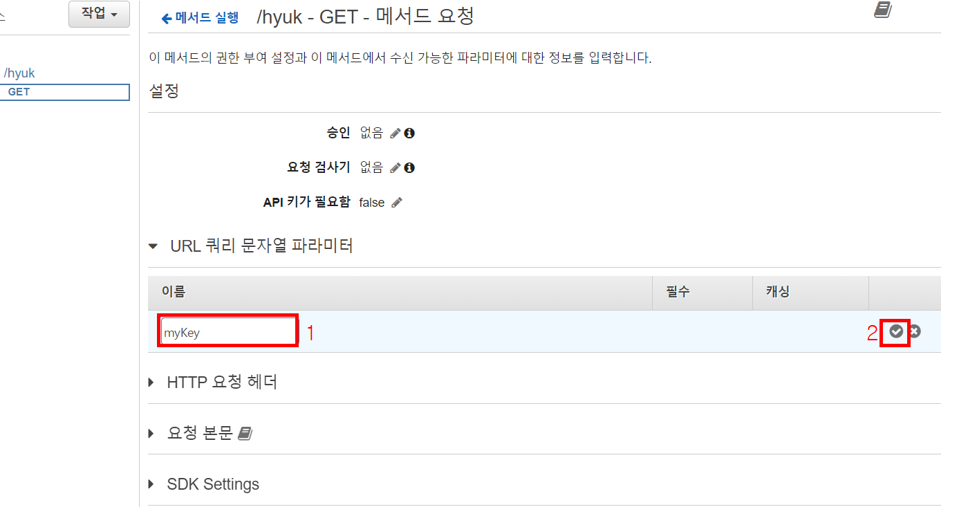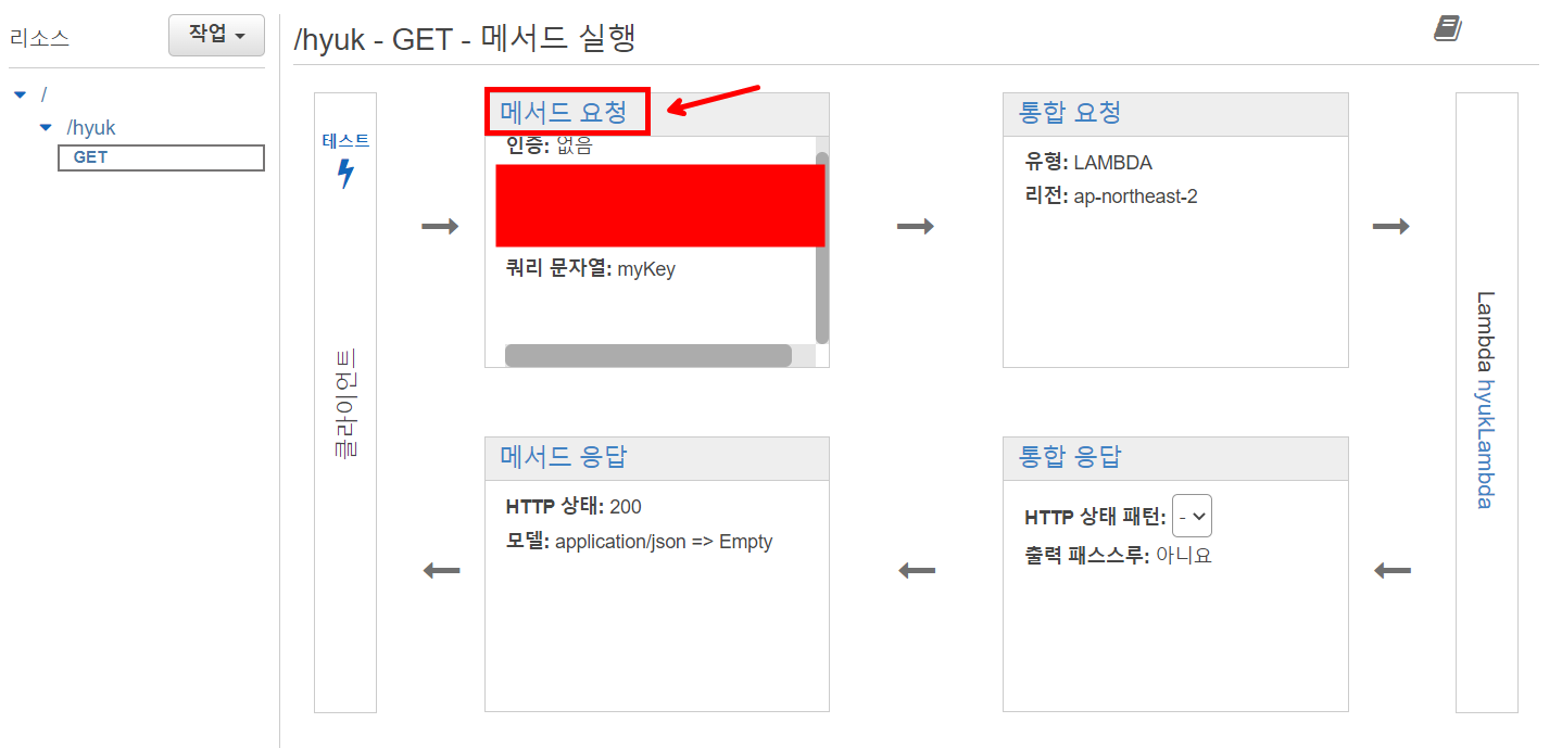 Lambda 함수에서 event로 받는 'myKey' 값을 추가한 후 체크합니다.