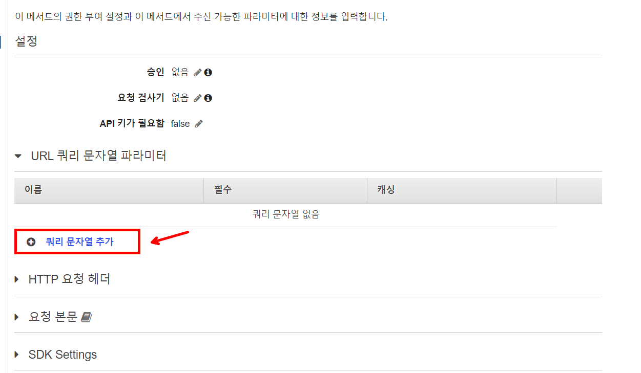 Lambda 함수로 돌아와 확인해 보면 트리거 위치에 API 게이트웨이가 추가된 것을 확인할 수 있습니다. API 게이트웨이를 선택하면 다음과 같이 구성에 대해 상세하게 볼 수 있는데 [API 엔드포인트]를 선택한 후 파라미터를 추가하면 GET 메서드가 동작합니다.