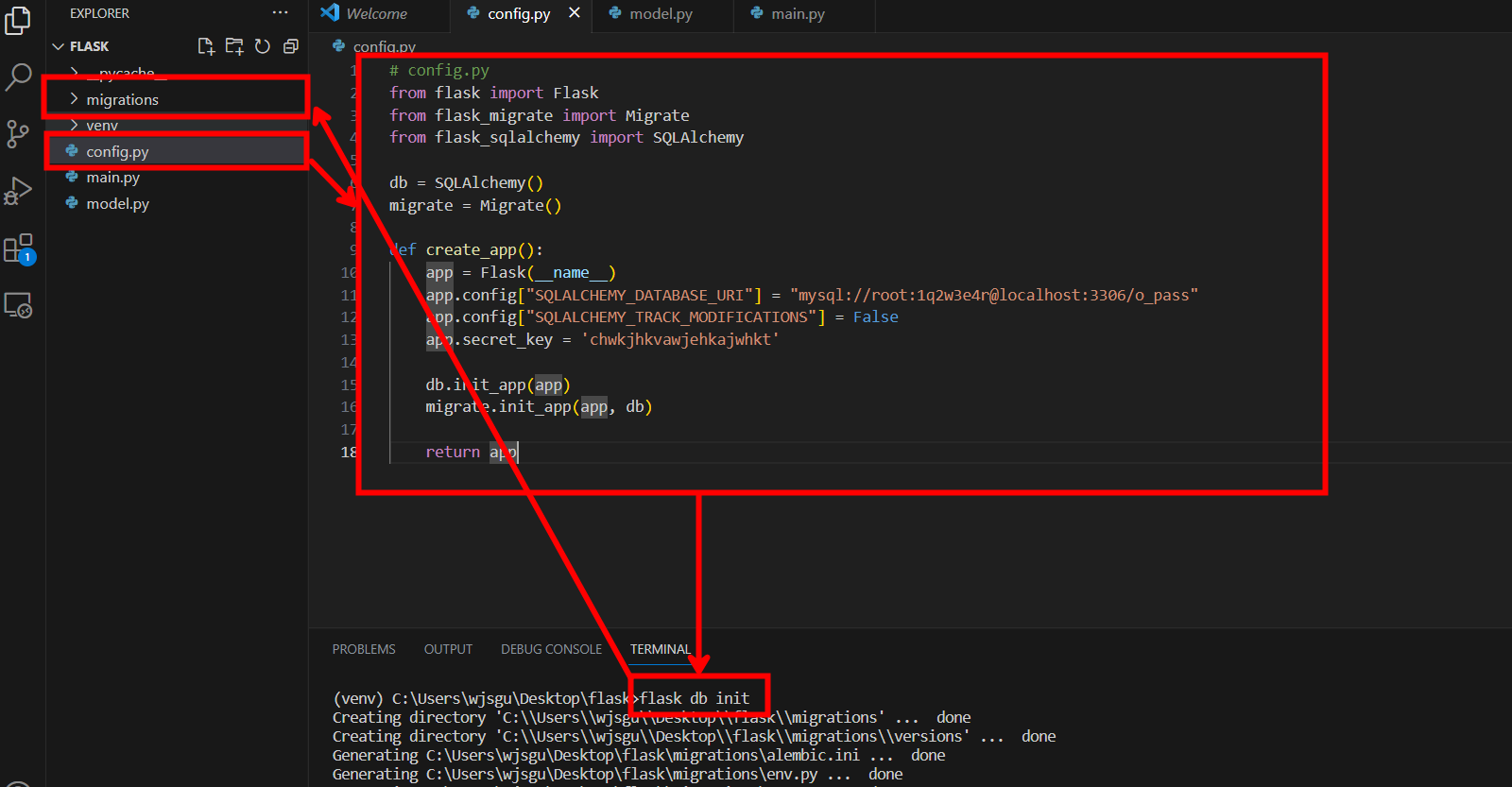 설정한 config를 migrations로 만들어주기 위해 다음과 같이 flask db init을 사용합니다.