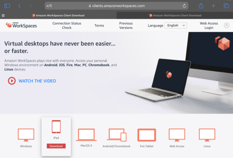 다음과 같이 여러 디바이스에서 VDI와 같이 WorkSpace에 접속할 수 있는 모습입니다.