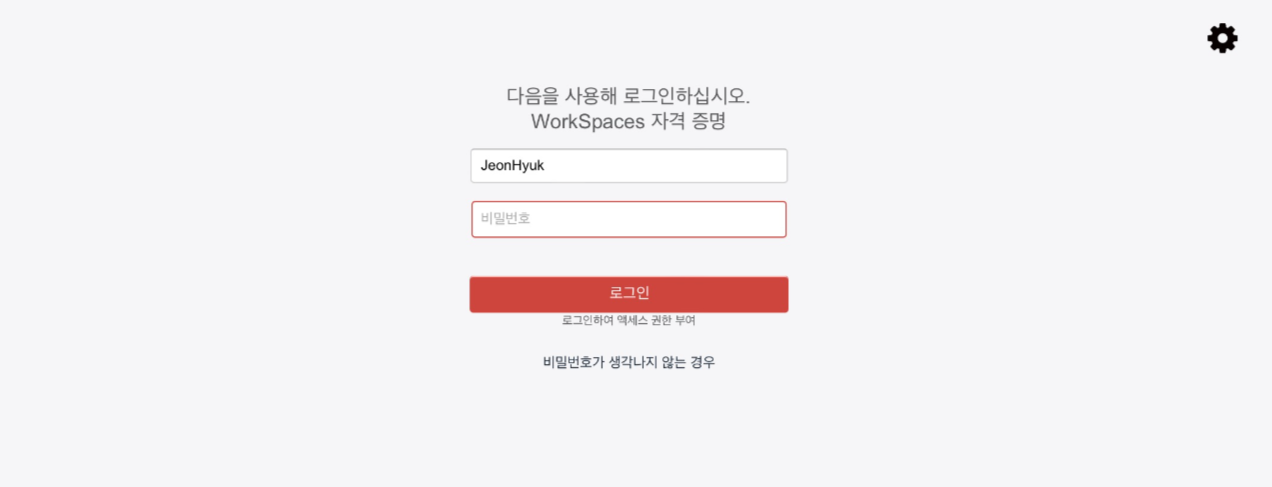 비밀번호를 설정했다면 사용자 계정을 입력한 후 비밀번호 입력 후 로그인합니다.