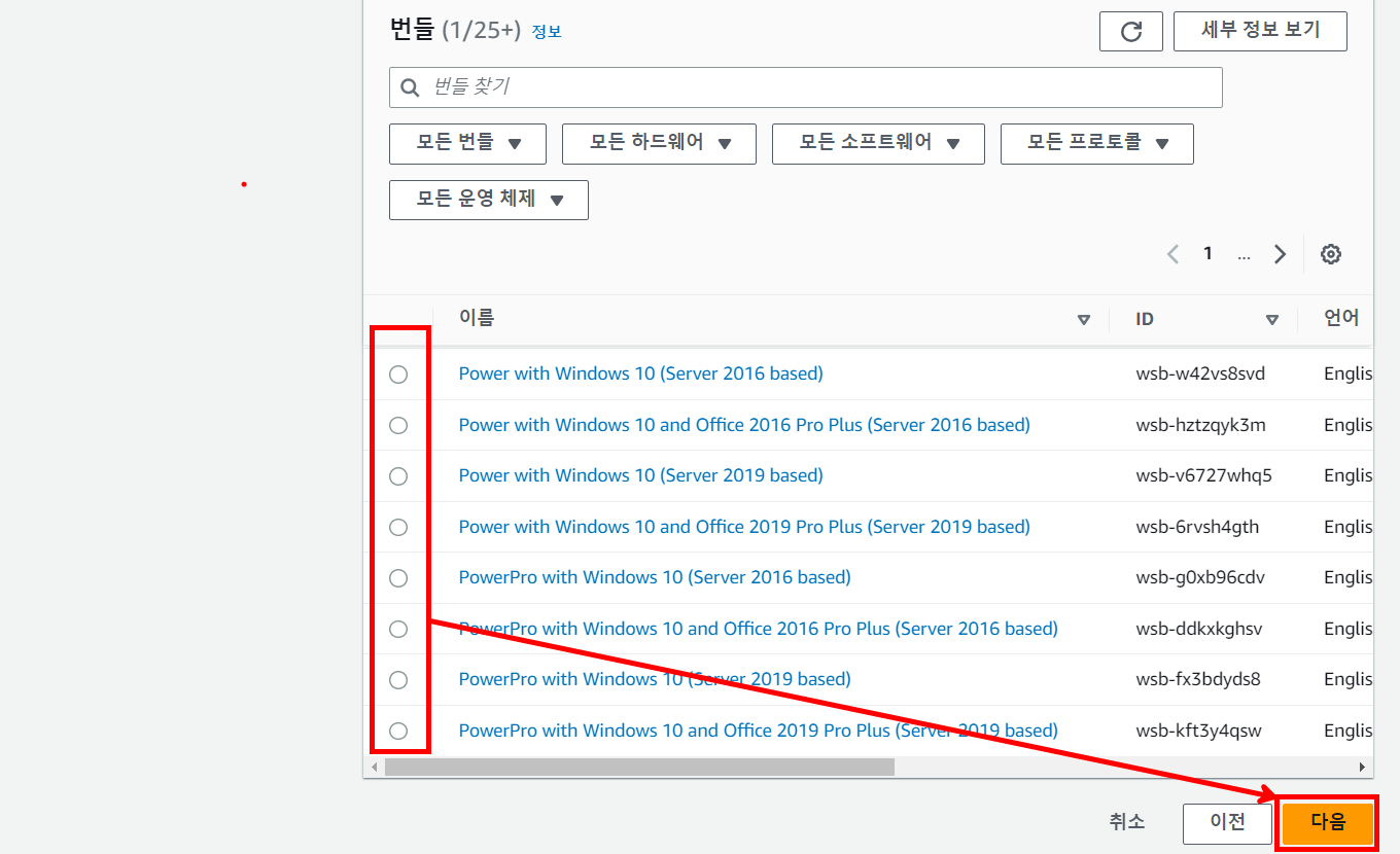 Bundle을 선택한 후 다음을 눌러줍니다. 저는 프리 티어 Linux 2를 선택했습니다.