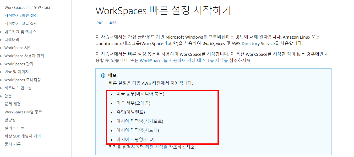 다음은 WorkSpaces 설정 가이드입니다.
