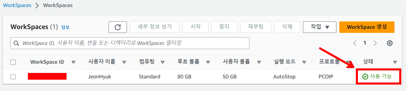 워크스페이스가 프로비저닝 되는데 생각보다 많은 시간이 소요되기 때문에 사용하기 위해서는 수분에서 1시간까지 기다려야 합니다.