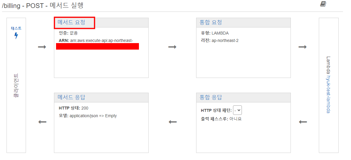 POST 메서드 설정에서 앞서 생성한 Lambda 함수와 매핑한 후 저장합니다.