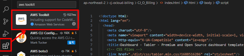S3에 업로드된 콘텐츠에 대해 손 쉽게 접근하기 위해 VS Code에서 다음과 같이 AWS ToolKit을 설치합니다.