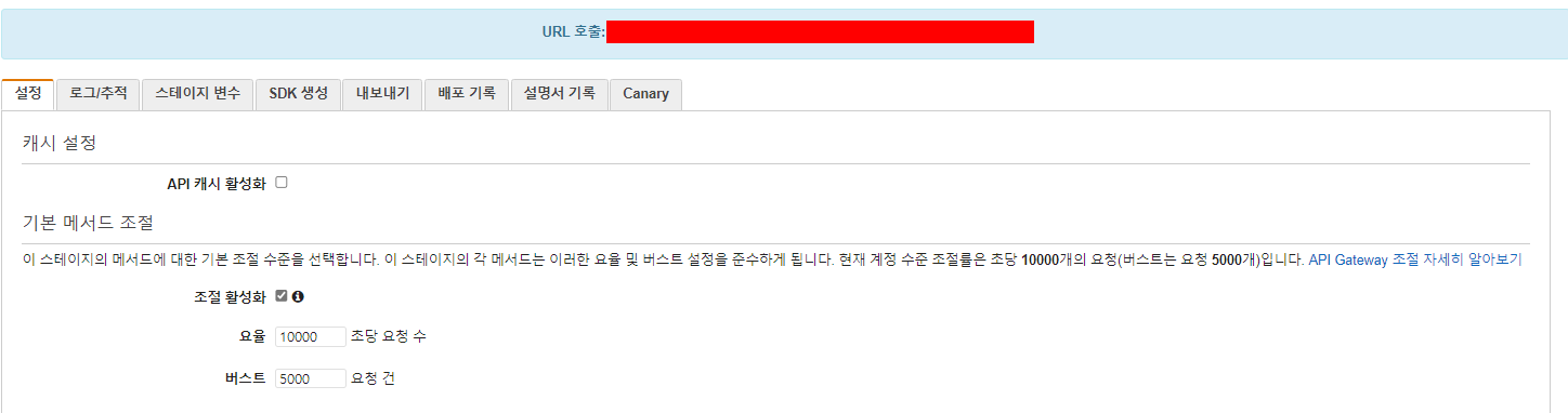 다음과 같이 배포 스테이지와 스테이지 이름을 설정한 후 [배포]합니다.