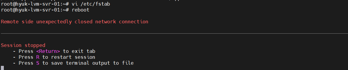 2. fstab 설정 후 서버 Reboot