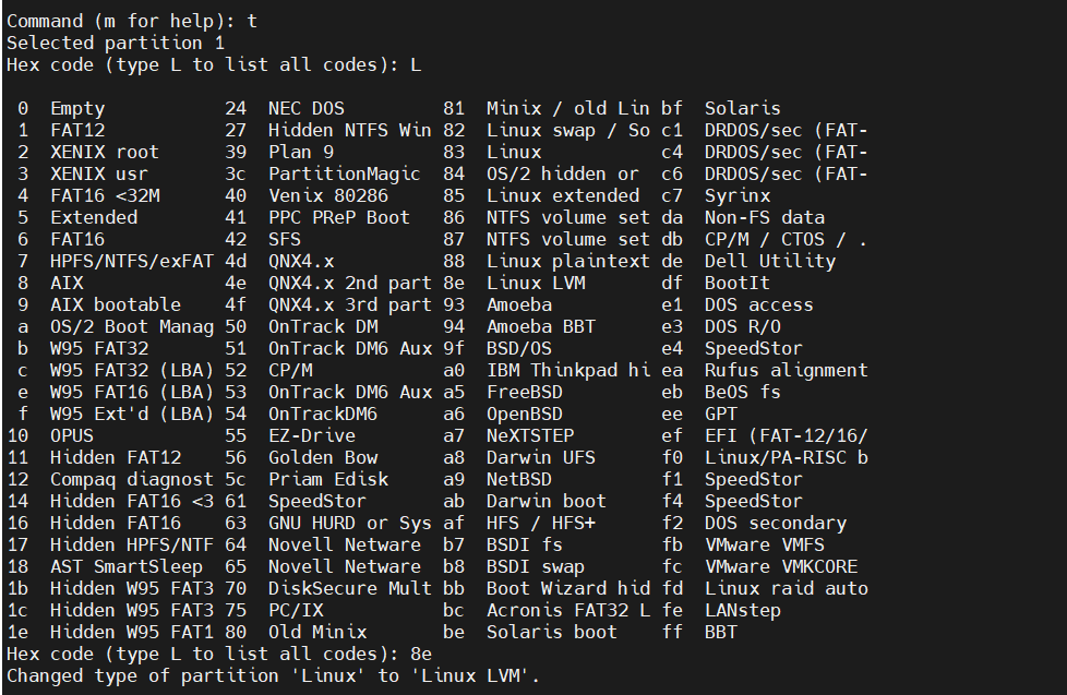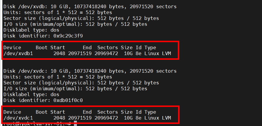 다시 디스크를 확인하면 Type이 Linux LVM으로 변경된 것을 확인할 수 있습니다.
