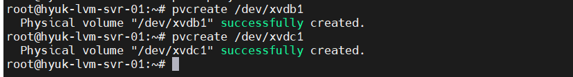 다음과 같이 설정합니다. 같은 방법으로 /dev/xvdc에 대해서도 LVM으로 설정해주세요.