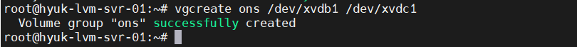 vgcreate ons /dev/xvdb1 /dev/xvdc1