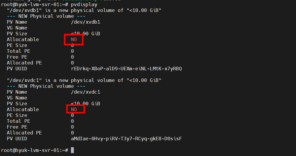 #/dev/xvdb1 PV 생성