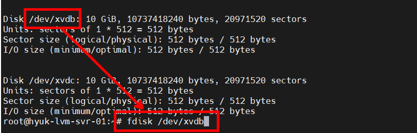 # <fdisk /dev/xvdb, fdisk /dev/xvdc>에 대해 설정