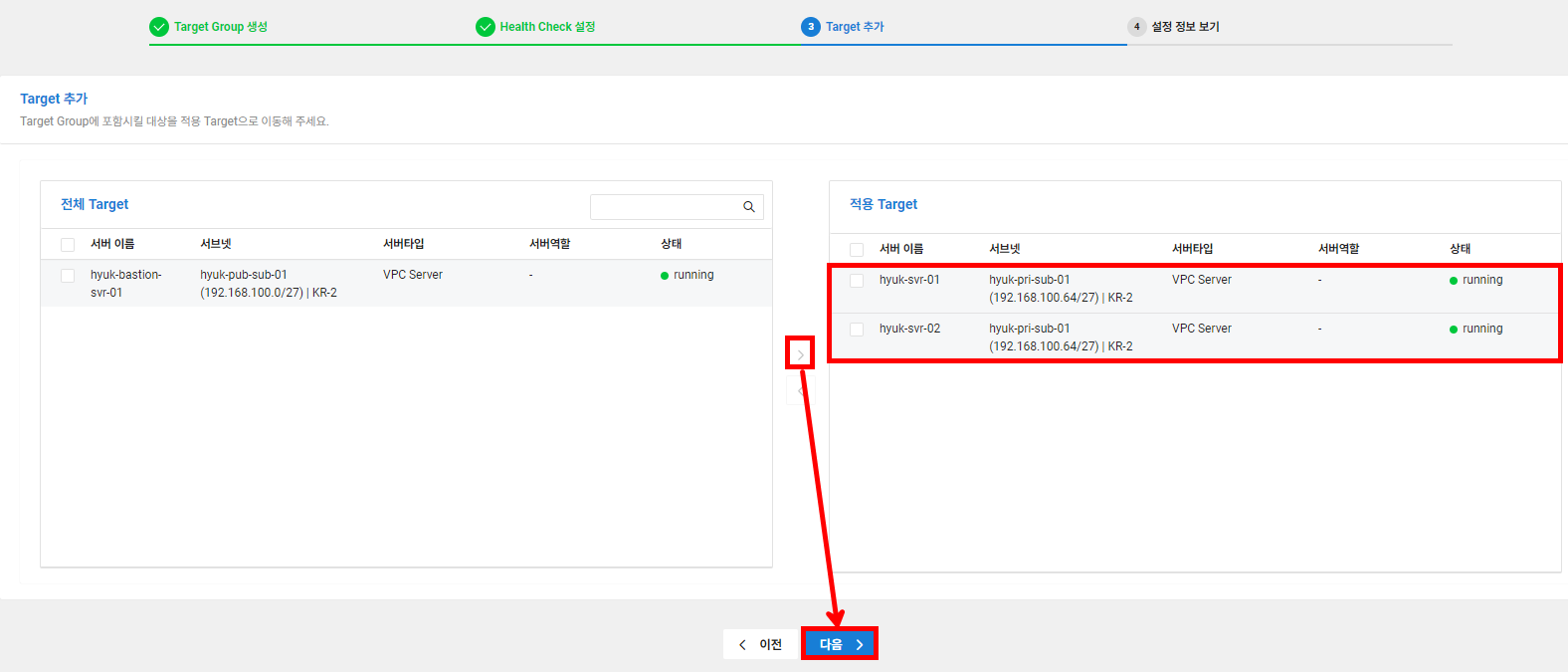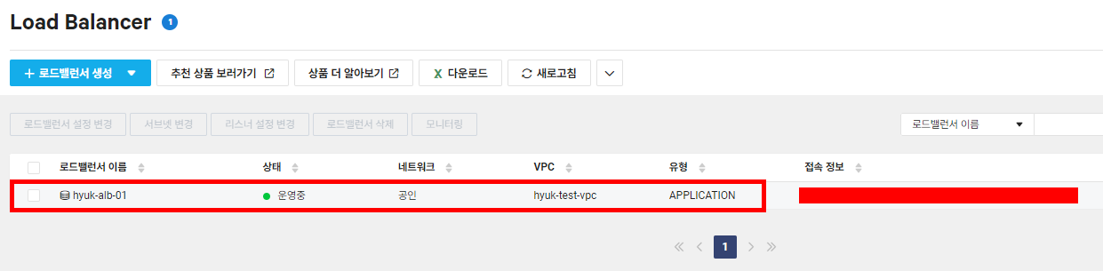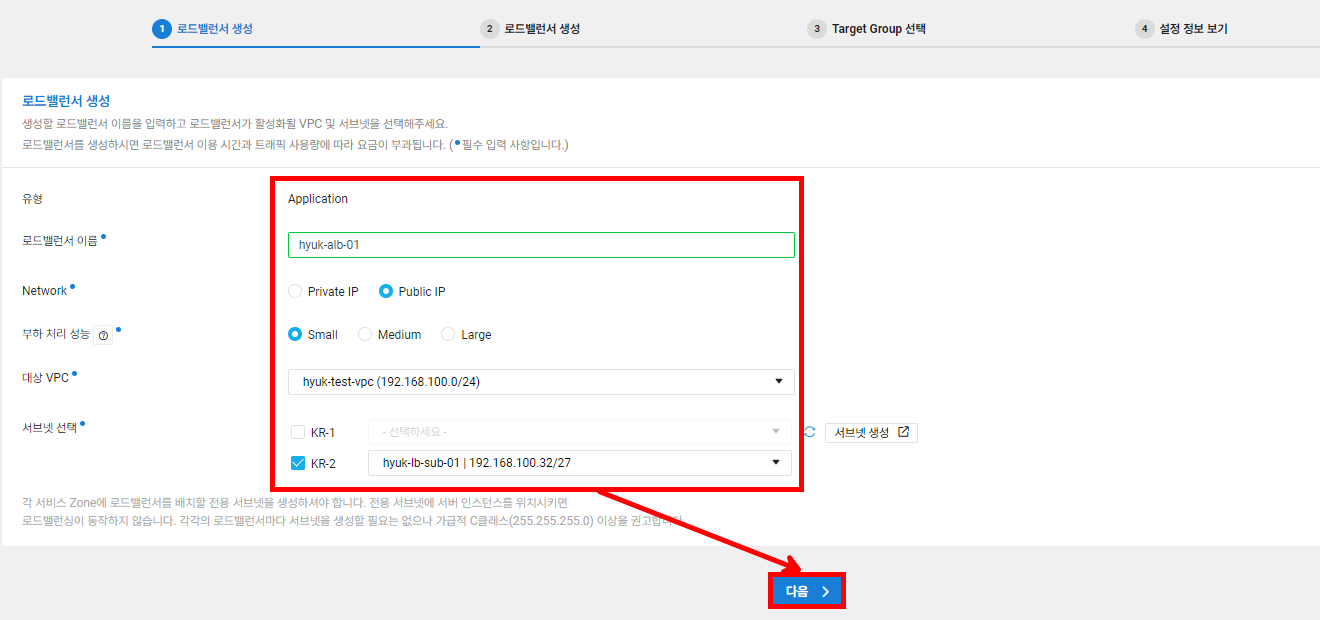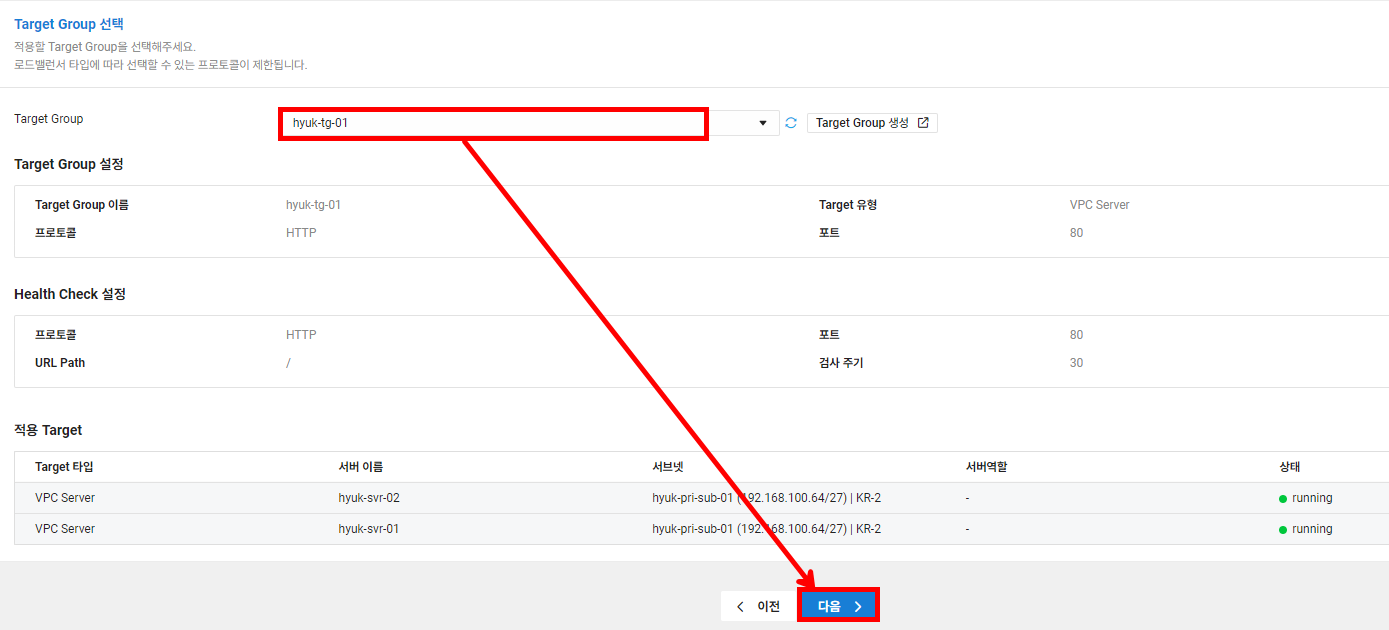 | hyuk-lb-sub-01 | 192.168.100.32/27 | Private | 로드밸런서 |
