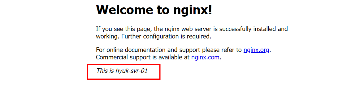 Private 서버에 접속하여 다음 코드로 Nginx를 설치합니다.