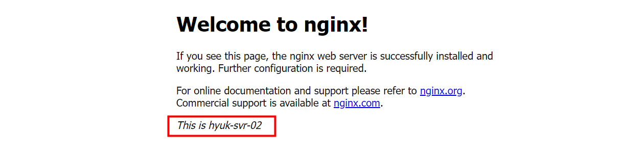 타겟 그룹 상태까지 확인했다면 웹 서버에 접속했을 때 정상적으로 로드밸런서를 통해 부하가 분산되어 서비스에 접근 가능한 것을 확인할 수 있습니다.