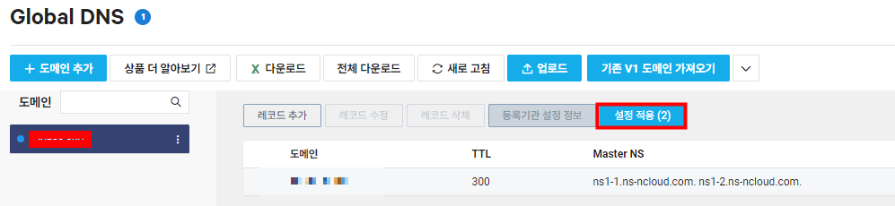 다음과 같이 Global DNS의 설정을 변경한 후 설정 적용을 눌러 배포해주어야 합니다.