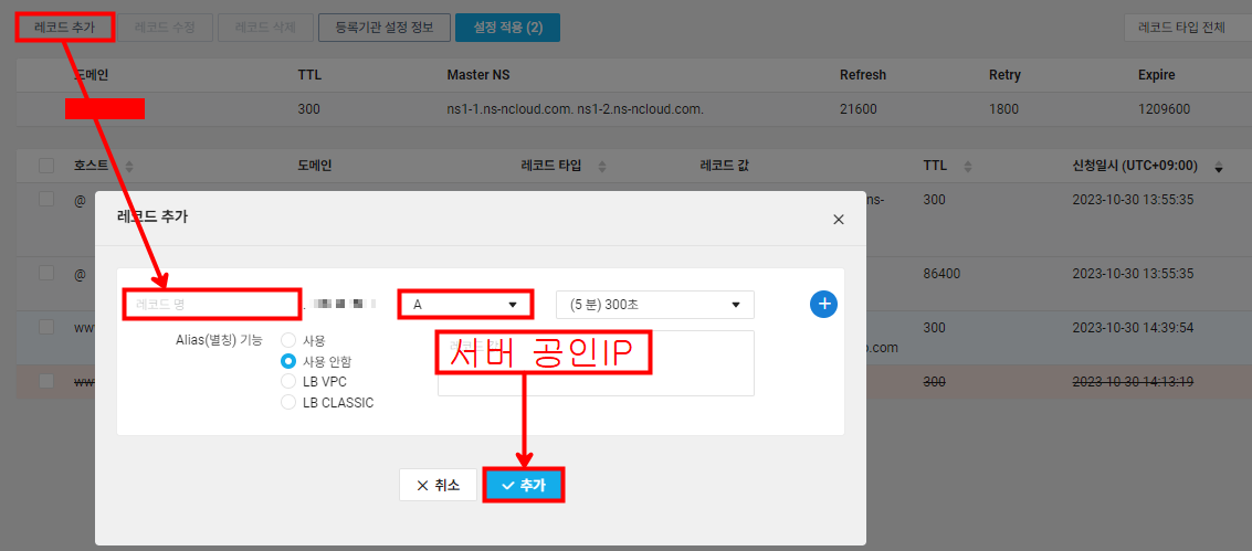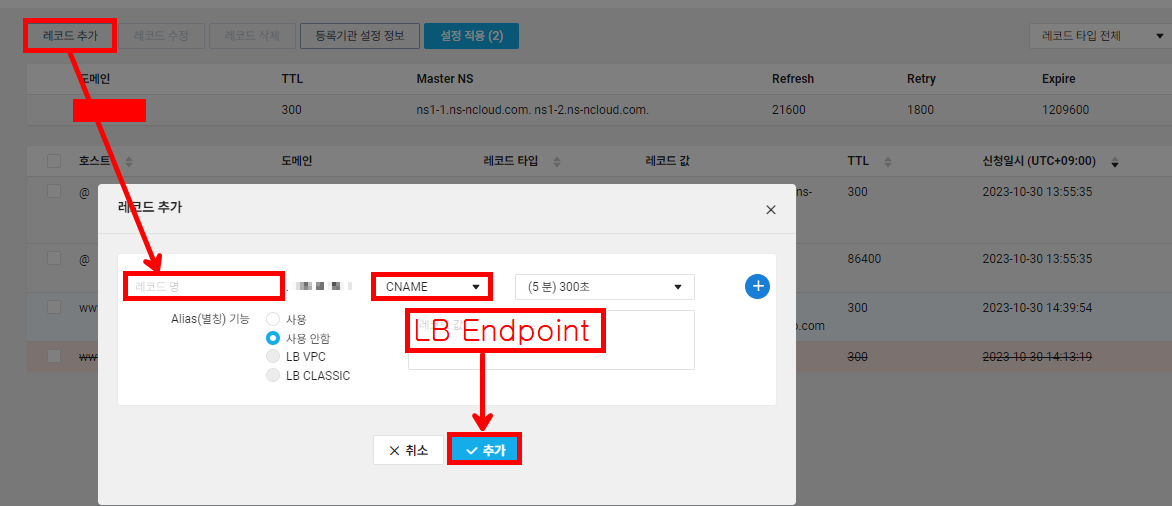 3. NCP Global DNS에 A, CNAME 레코드 등록 후 배포하기
