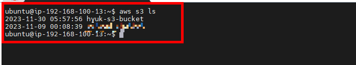 aws s3 ls 명령어를 통해 awscli로 생성된 버킷을 확인합니다.