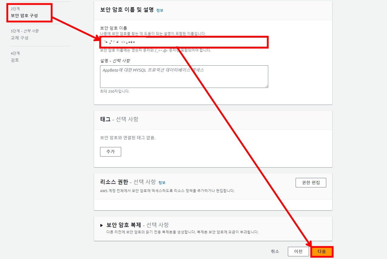 secret_name = "<내 Secrets Manager 보안 이름>"