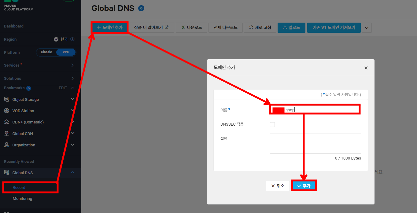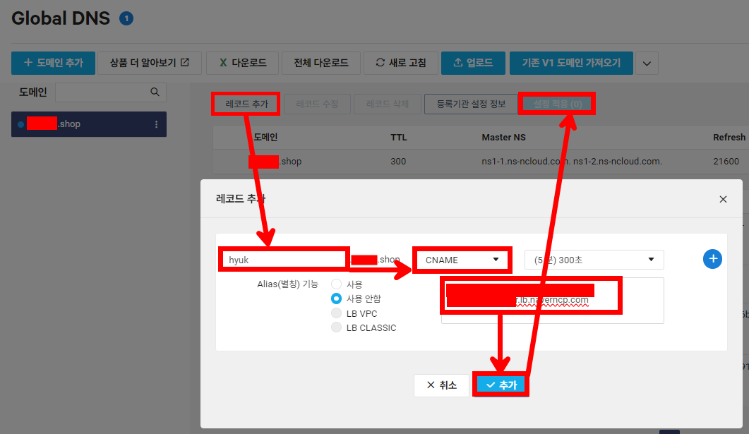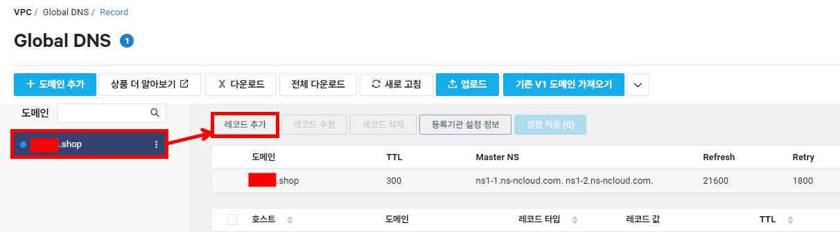[NCP] NCP에서 외부(가비아)에서 구매한 도메인 Global DNS에 도메인 등록하기