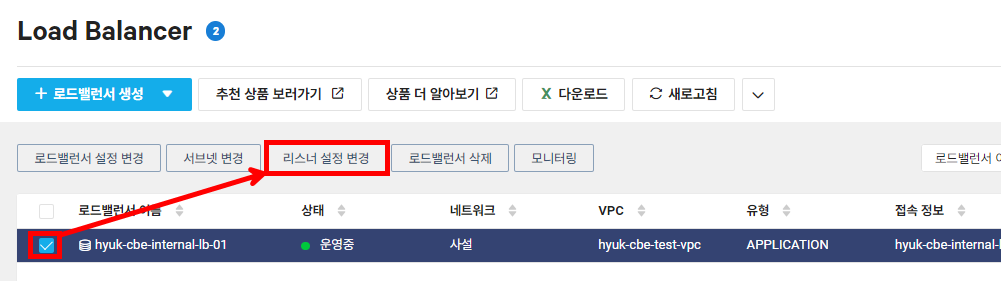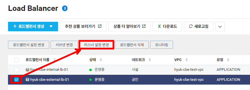 외부 로드밸런서부터 리스너 설정 변경을 통해 변경해 주겠습니다.