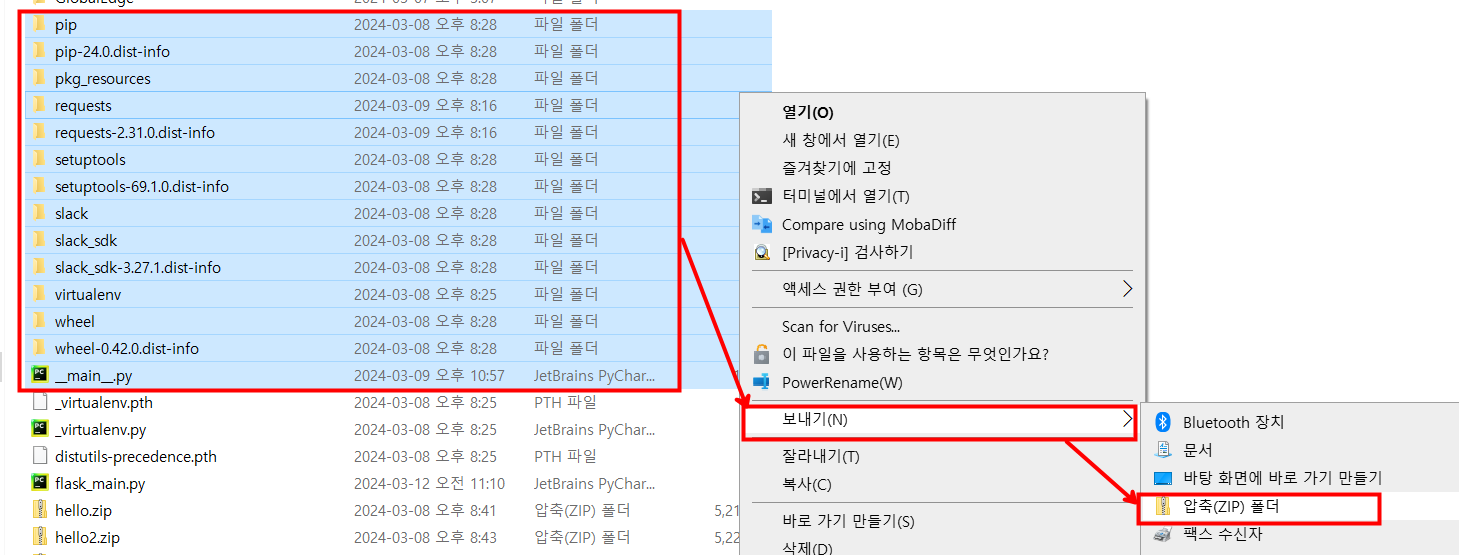 필요한 모듈과 함께 main 파일을 ZIP으로 압축하면 되는데 이때 main 파일의 파일명은 __main__.py이어야 합니다. Cloud Functions 공식 가이드에서 다음과 같이 안내하고 있습니다.