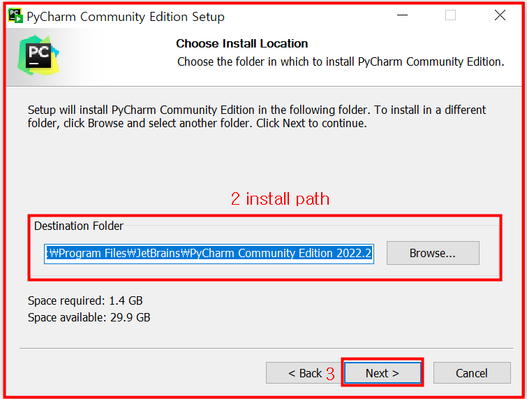 파이참이 설치될 경로를 지정할 수 있는데 저는 제가 편한 곳에 설치해주었습니다.