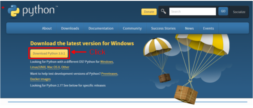 다음 화면에 보이시는 노란색 버튼 Download Python 3.9.1을 눌러서 install을 진행합니다.