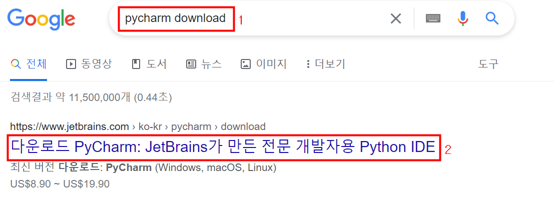 www.jetbrains.com/ko-kr/pycharm/download/#section=windows