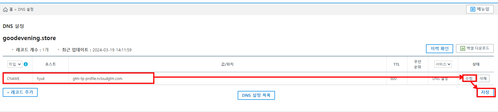 구성도에서는 Global DNS로 되어 있지만 저는 가비아를 사용하였습니다. Global DNS로 사용해도 결과는 같기 때문에 괜찮습니다. 이 경우 도메인을 구입한 후 네임서버를 Ncloud로 변경해 주신 후에 Global DNS에서 레코드를 등록해 주시면 됩니다.