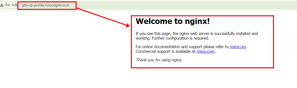 이 경우 GTM 도메인으로 접속 시 트래픽이 정상적으로 로드밸런서로 흐르게 됩니다.
