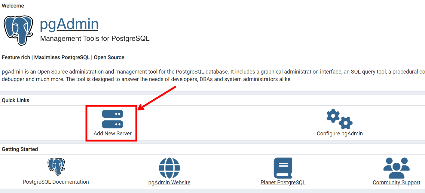 pgAdmin4를 설치했다면 다음과 같이 [Add New Server] 버튼을 눌러줍니다.