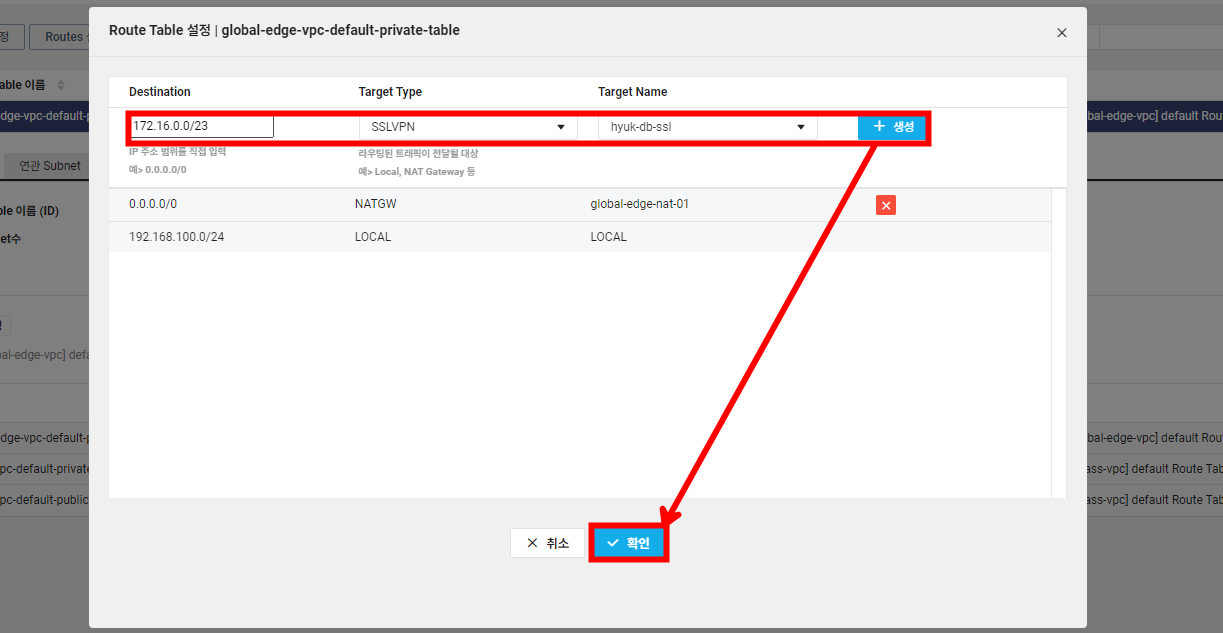 2. Routing Table에 SSL VPN 대역 추가하기