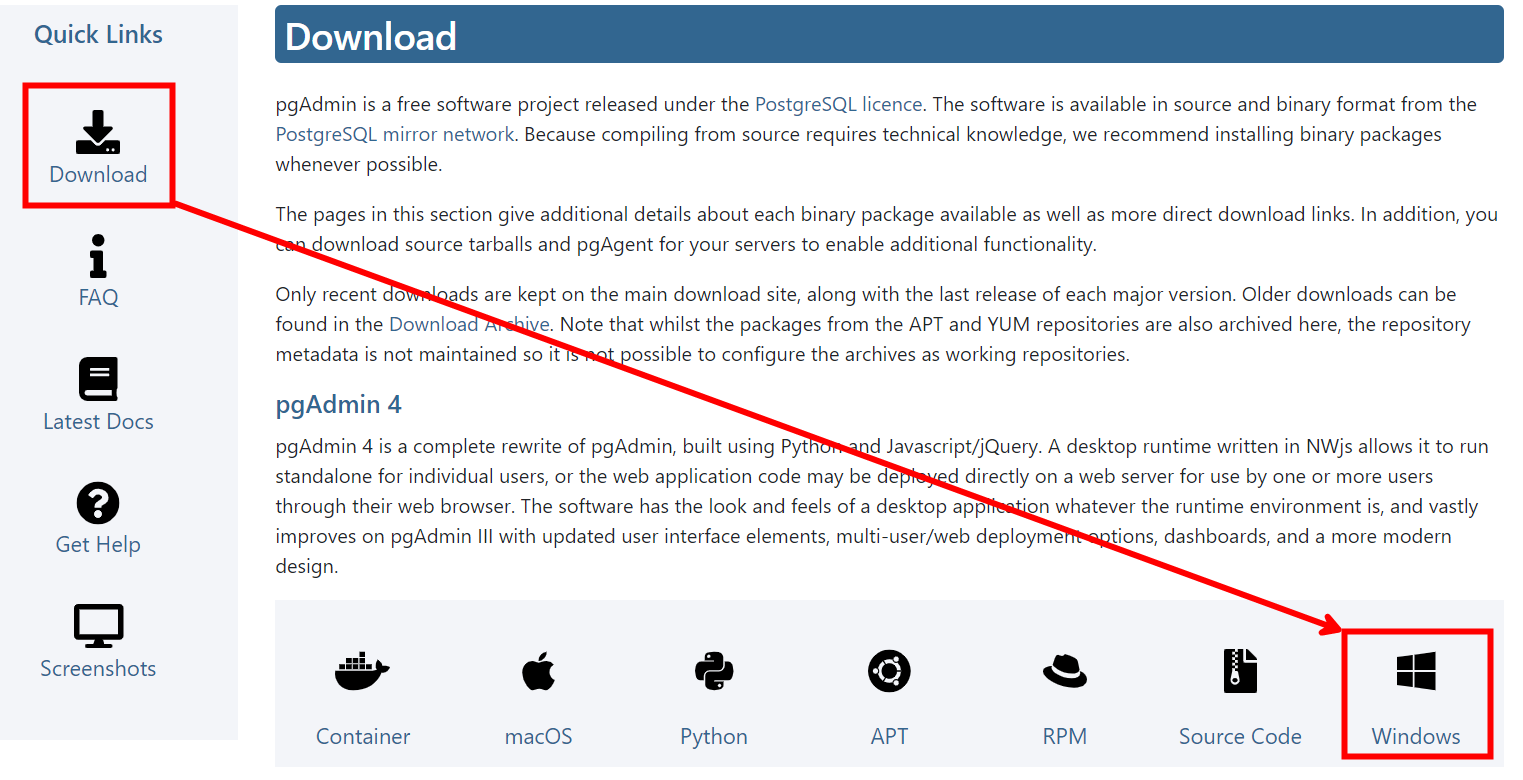 Download pgAdmin is a free software project released under the PostgreSQL licence. The software is available in source and binary format from the PostgreSQL mirror network. Because compiling from source requires technical knowledge, we recommend installing