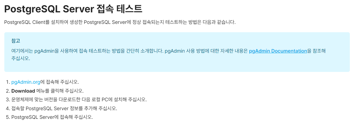 5. Ncloud에서는 DB Client를 pgAdmin4를 테스트 용도로 사용하지만 다른 DB Client를 사용해도 무방합니다.