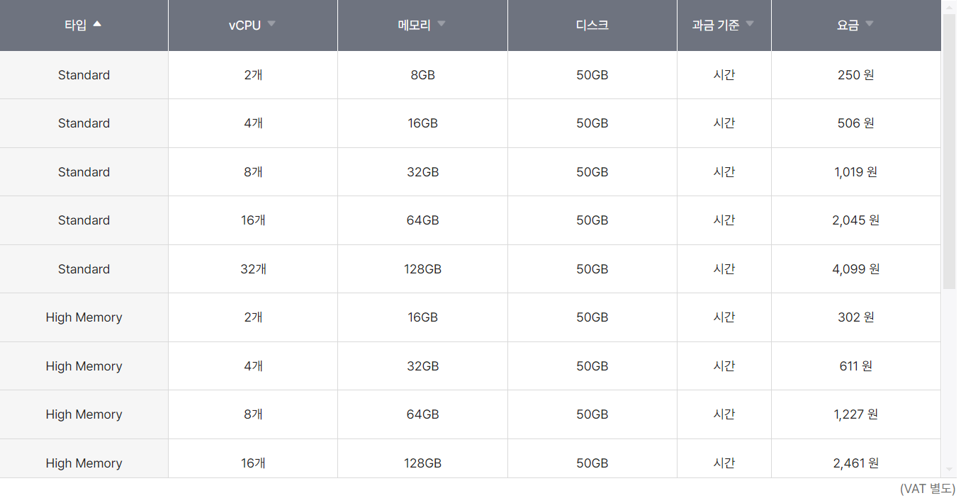 가장 스펙이 낮은 Standard 기준으로 시간당 250원에 부가세가 별도로 붙습니다. 또한 DB 서버는 고가용성이 Default이기 때문에 기본적으로 2대가 생성되며 한 달 기준으로 이용 요금은 360,000원이 나옵니다. 기본적으로 스토리지는 일부 제공하지만 추가적인 스토리지에 대해서는 추가 요금이 붙는 점은 참고하시면 좋을 것 같습니다.