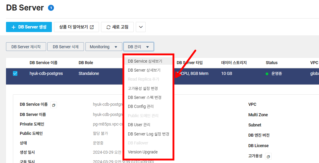 (8) Cloud DB for PostgreSQL 기능 살펴보기