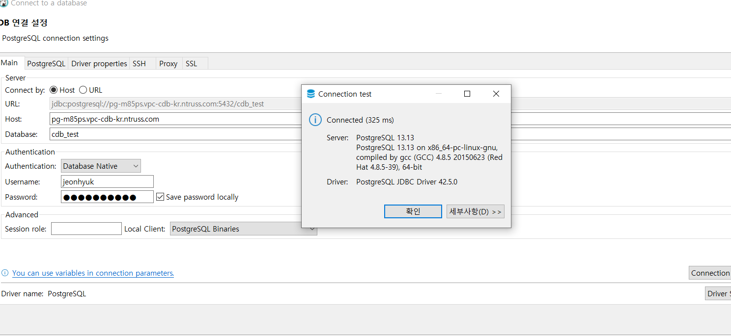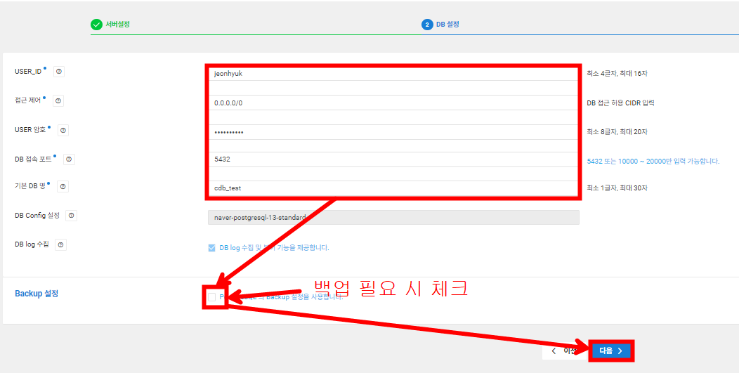 *주의사항) Ncloud에서 DB 생성 시 입력한 유저는 관리자 권한(superuser)을 갖지 않습니다.